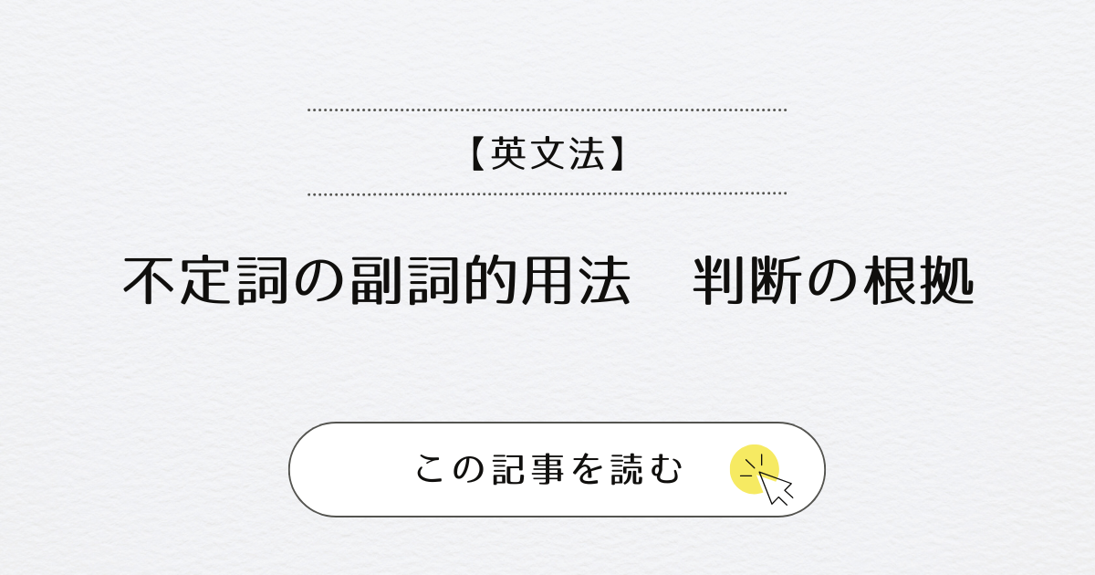 今回は、不定詞の副詞的用法の判断の根拠を表す用法について解説しました。