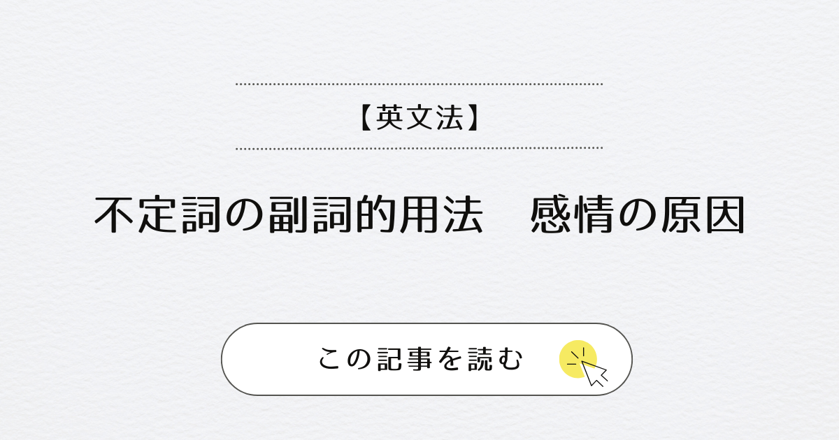 今回は、不定詞の副詞的用法の感情の原因を表す用法について解説しました。