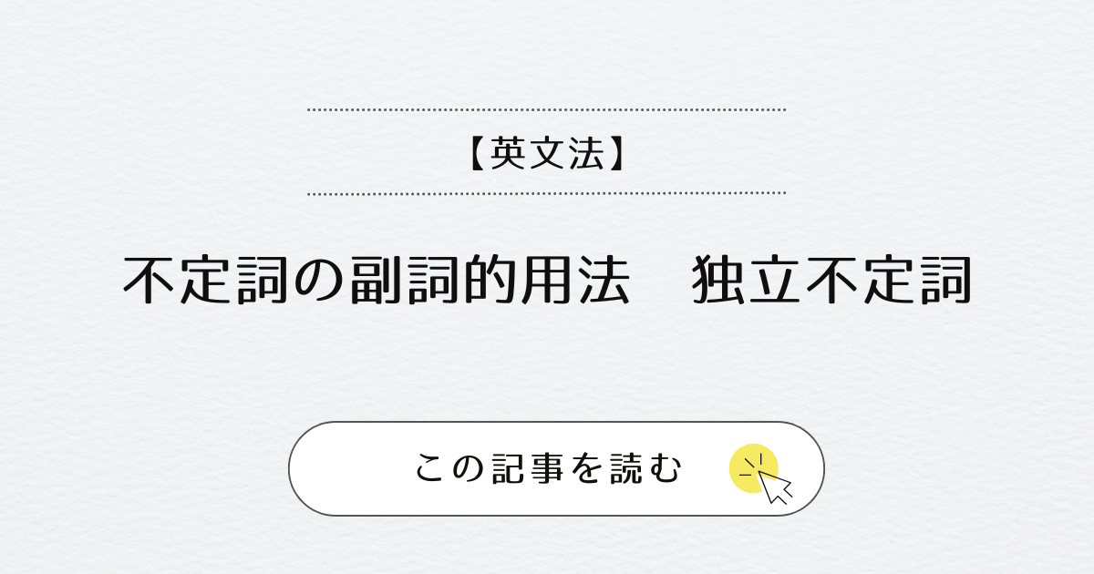 ⑥独立不定詞(慣用表現):文を修飾 (今回の記事)