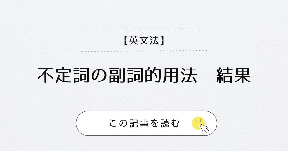 今回は、不定詞の副詞的用法の結果について解説しました。