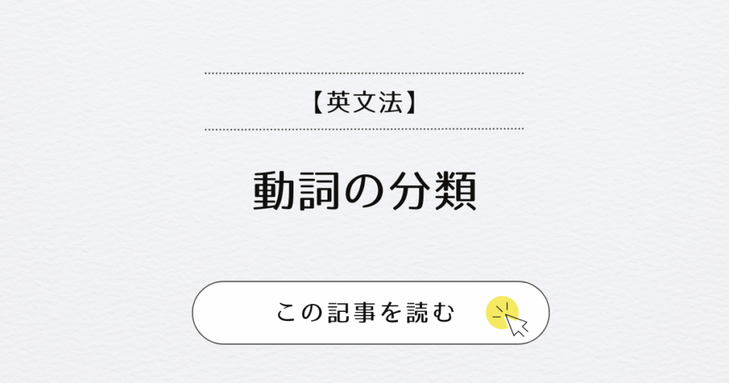 be動詞と一般動詞 英語の動詞にはいくつかの分類があります。 まず一番ざっくりとした分け方として、be動詞と一般動詞という分け方があります。 当たり前ですがbe動詞に分類される動詞は、be動詞のみです。 一般動詞はbe動詞以外の動詞全てを指します。 な... -