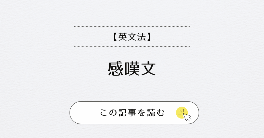 感嘆文とは 「なんて~なんだ!」のように、驚いたことなどを強調して表したいときに使う文が感嘆文です。 感嘆文には、how使う形とwhatを使う形の2種類があります。 文末にはふつう感嘆符(!)を付けますが、ピリオド(.)を用いても良いです。 howを使... -
