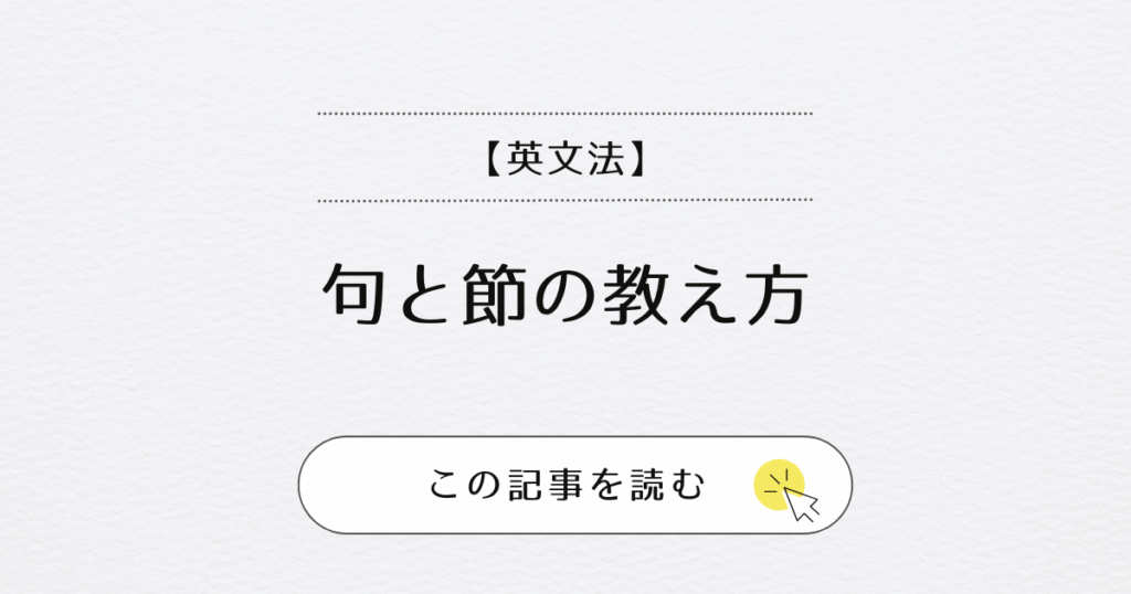 句と節とは? 英文法を独学で勉強していると、「句」と「節」という言葉が付いた文法用語によく出会うと思います。副詞句、関係代名詞節など「句」と「節」が付いた文法用語はたくさんありますが、肝心の「句とは何か?」、「節とは何か?」をあまり理解で... -