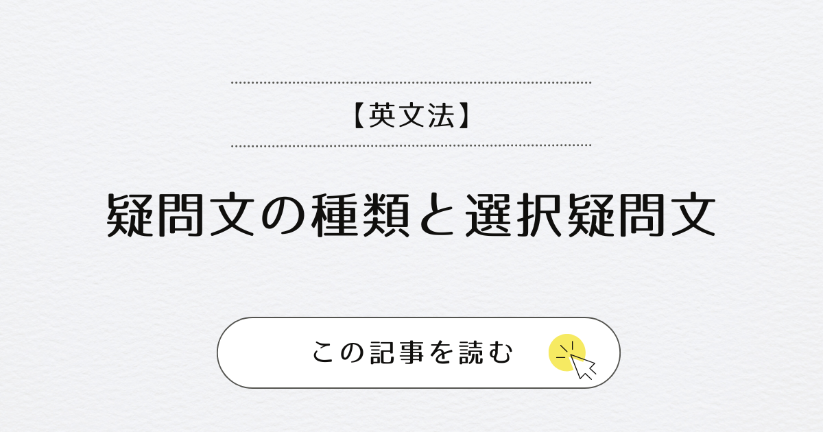 疑問文には大きく分けて、Yes / No Question、疑問詞を使った疑問文、選択疑問文の3つの種類があります。