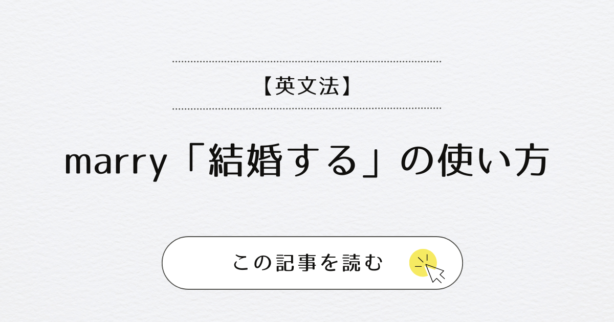 以前「marry に with を付けたらどのような意味になってしまうのか?」といった質問を受けたことがあります。